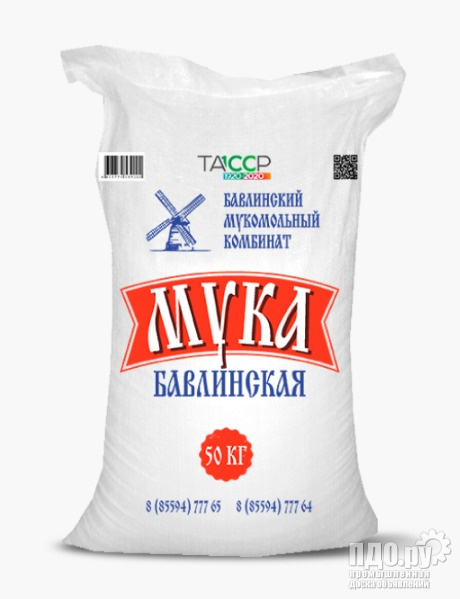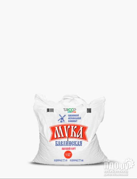 Мука пшеничная в/с и 1 сорт ГОСТ в фасовках 50 кг, 25 кг в полипропиленовых мешках, 10 кг и 5 кг в мешках спандбонд с прорубной ручкой